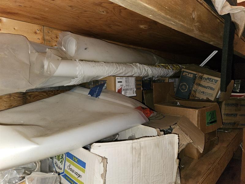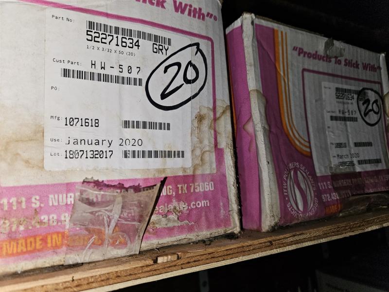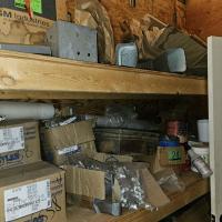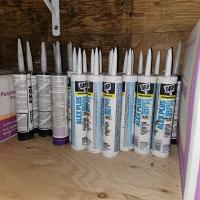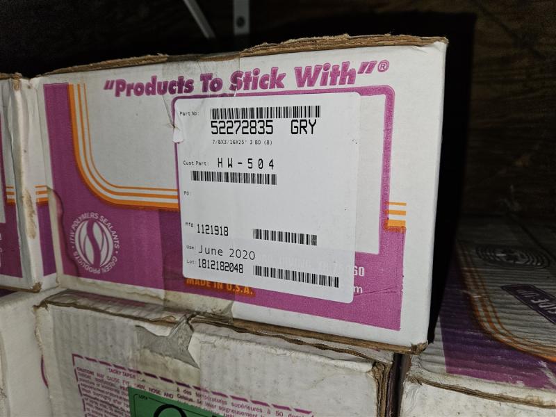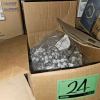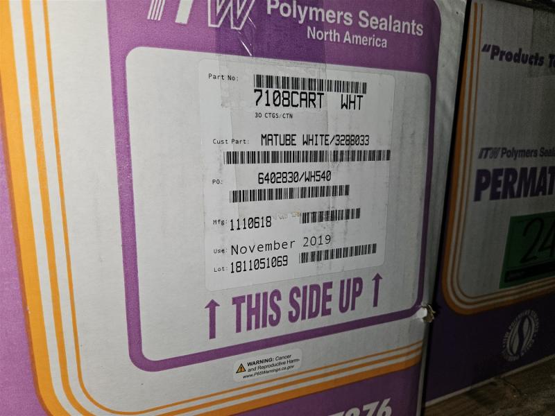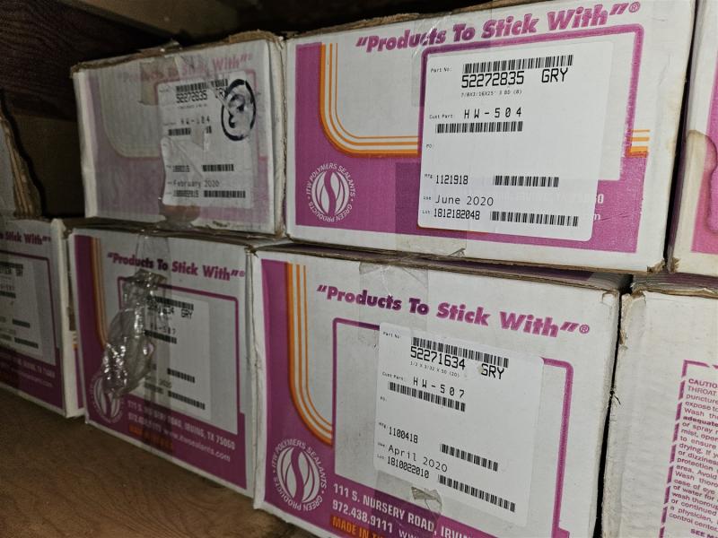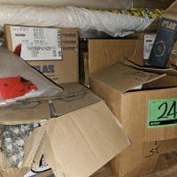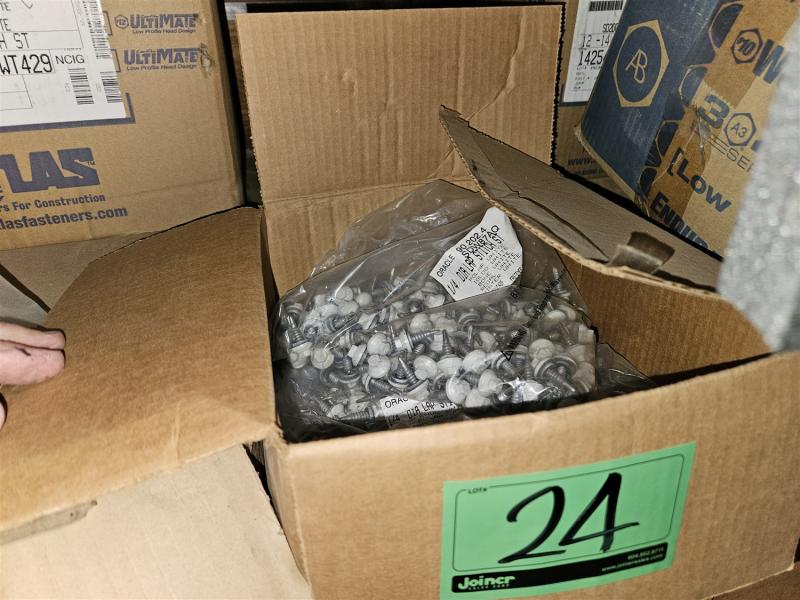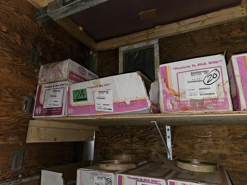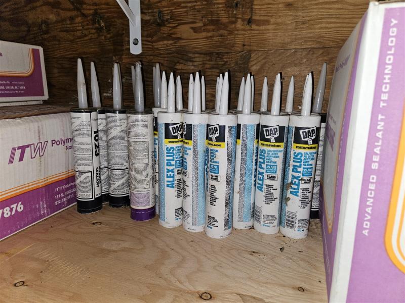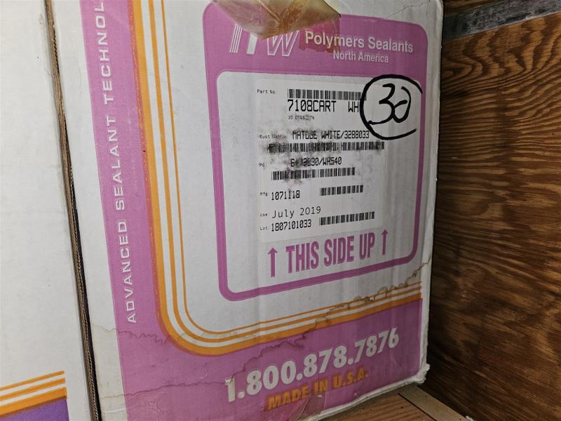 CONTENTS OF LOT # 22 TRAILER – ASSORTED FASTENERS, POLY, SLIDING CLIPS, STEEL PLATES, APPROX. 24 BOXES OF ITW SEALANTS, CAULKING