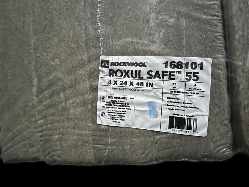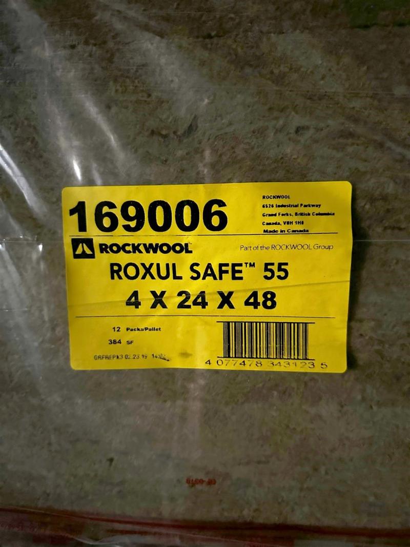 LOT OF ROCKWOOL INSULATION - ROXUL SAFE 55 4 X 24 X 48 – (18) FULL PALLETS, (13) OPENED PALLETS - BUYER HAS ONE WEEK EXTENDED REMOVAL DEADLINE.