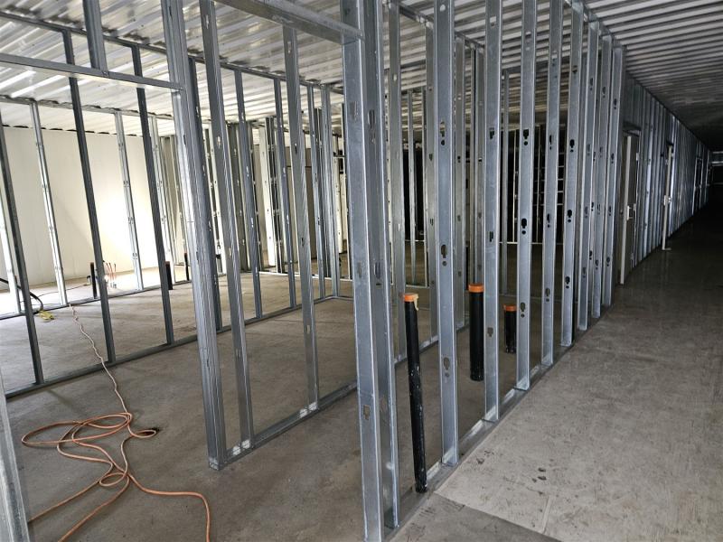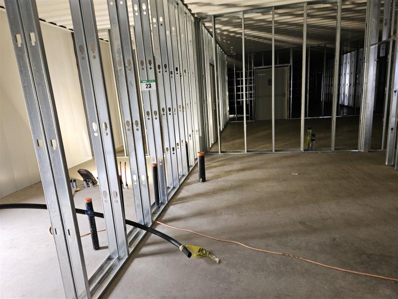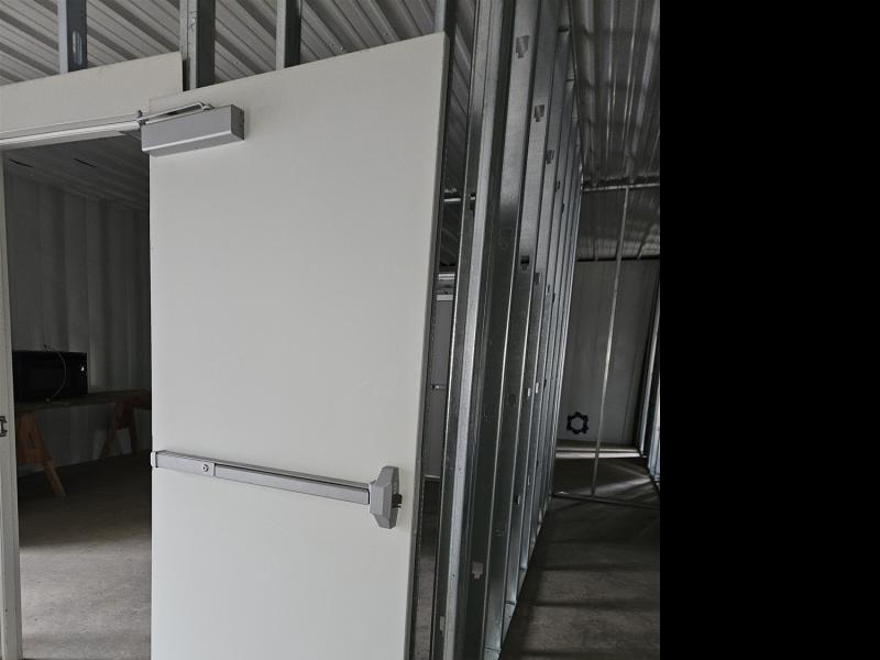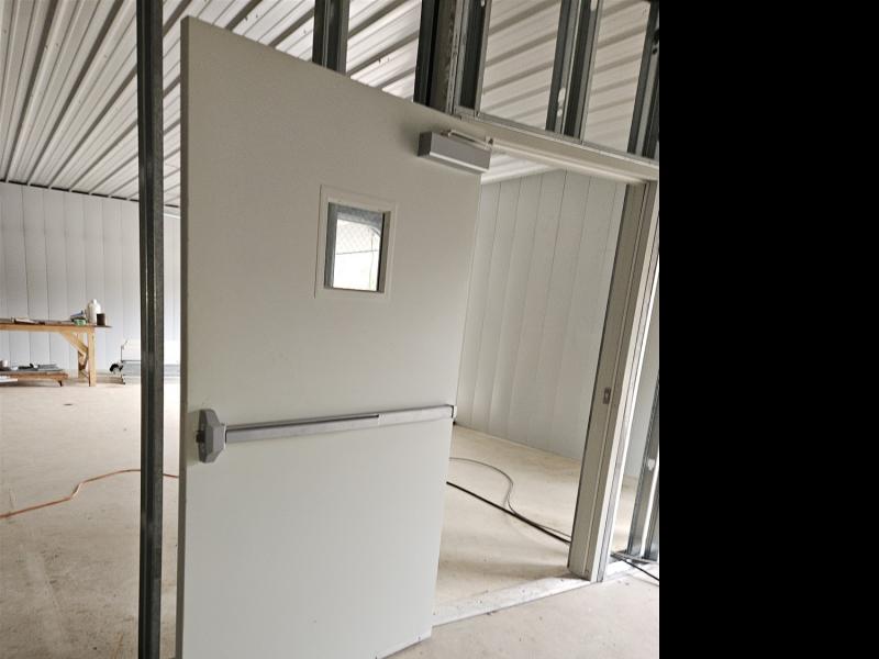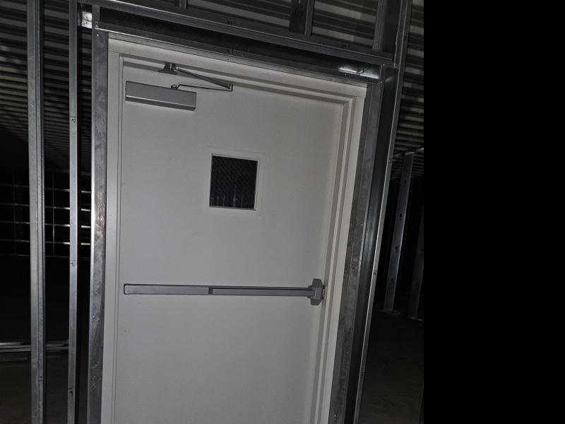 METAL STUD FRAMEWORK IN 10,000 SQ. FT. METAL BUILDING TO BE DISMANTALED BY BUYER OF FRAMEWORK METAL STUD WALL STRUCTURES, FLOOR & CEILING PLATES AND DOORS COMPLETE WITH PANIC HARDWARE AND DOOR FRAMES. BUYER TO TAKE WHAT IS DESIRED WITH NO OBLIGATION FOR COMPLETE REMOVAL. APPROX. (310) 3 ½" X 118" METAL STUDS, APPROX. (155) 8" X 118" METAL STUDS, (14) 48 IN. X 7 FT METAL DOORS WITH FRAMES & HAGER MOD. 4700R PANIC HARDWARE, HAGER LOCKS, (2) 48 IN. X 7 FT METAL DOORS C W/ 10 IN. X 10 IN. REINFORCED GLASS WINDOW, (5) 36 IN. X 7 FT. METAL DOOR 48 IN. X 7 FT. METAL DOORS WITH FRAMES & HAGER MOD. 4700R PANIC HARDWARE, HAGER LOCKS
