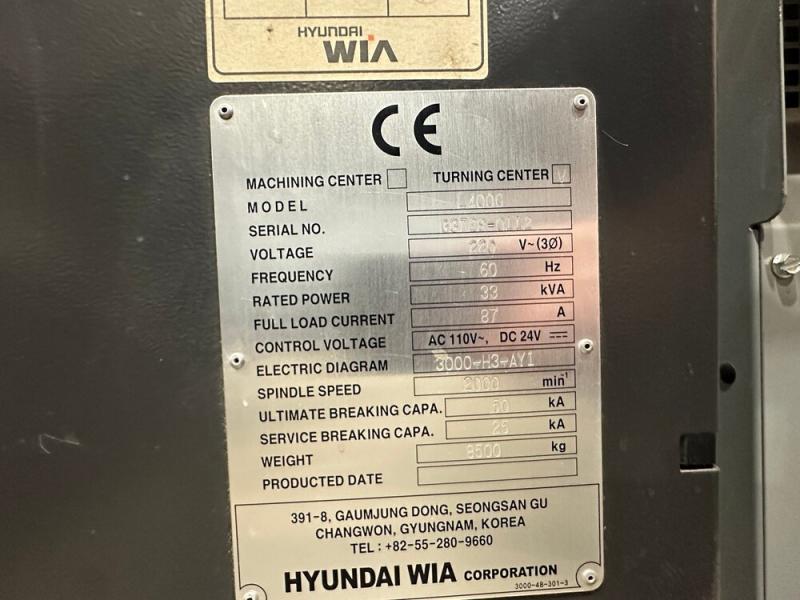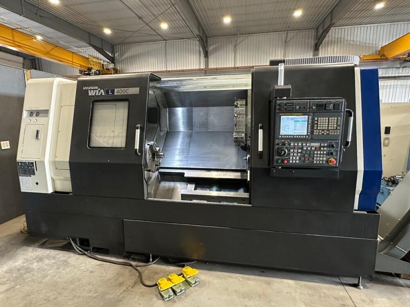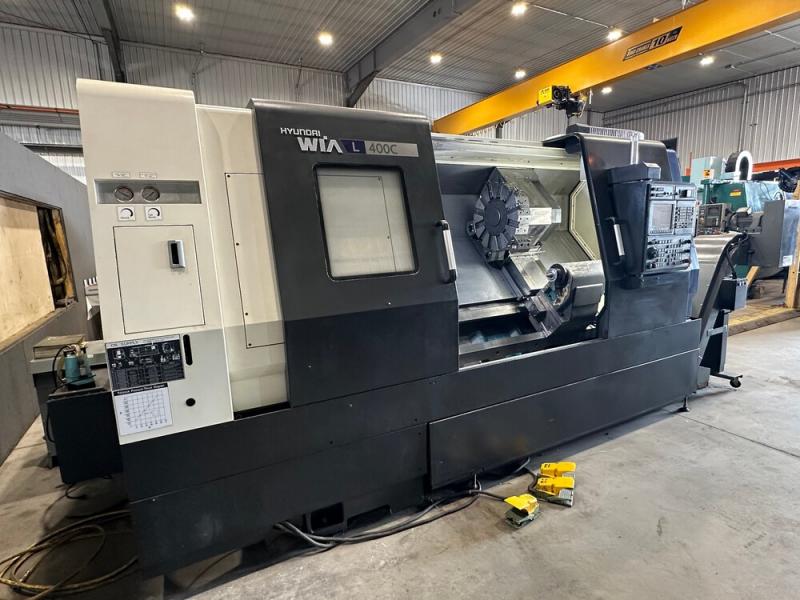 HYUNDAI WIA L400C CNC Turning Center HYUNDAI WIA L400C CNC Turning Center, Fanuc Series 32i-Model A CNC Control, Approx. 2,300hrs Run Time Hours, 15” 3-Jaw Hydraulic Chuck, Tailstock, Turret, Tool Setter, Chip Conveyor, s/n G3729-0112