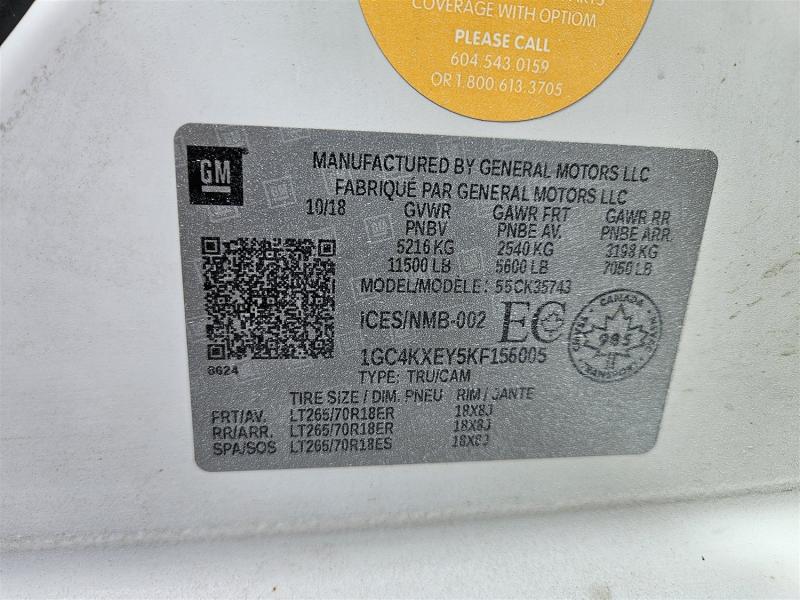 2019 CHEV SILVERADO Z71 LTZ, CREW CAB, 4X4, DURAMAX 6.6L DIESEL, SUNROOF, TONNEAU COVER, 214,127 KM