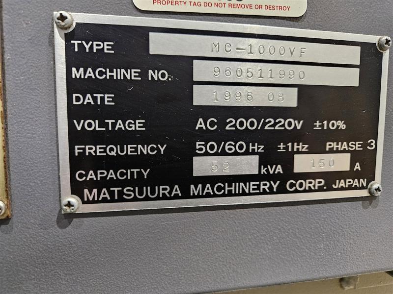 Vertical Machining Center - MATSUURA MC-1000VF CNC