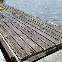 Lot of assorted floating docks, up to 50 ft. approx. Tubular boat stands Steel OB motor test tank Dock floats - Poly encased foam 3' X 4' X 30"H Dock expanded metal walkways Out of water dock sections