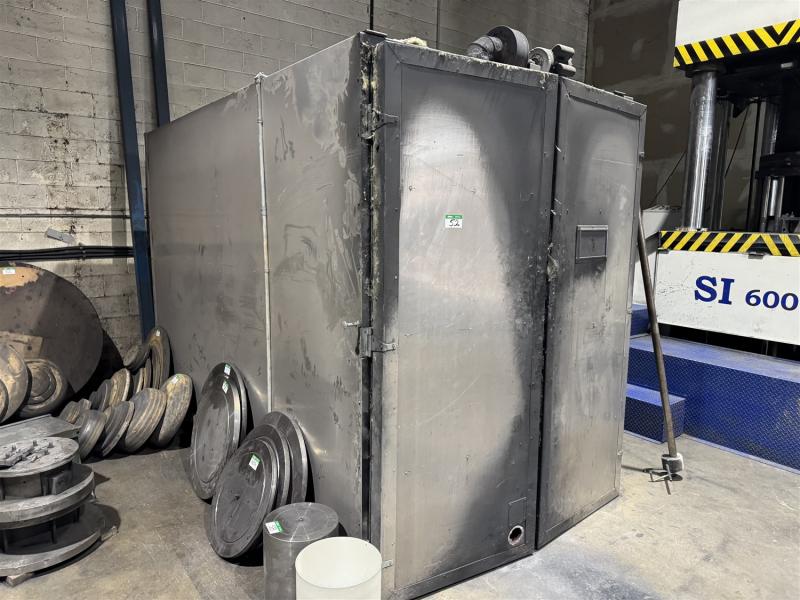 Powder coat curing furnace, electric, 128 in. x 72 in., w/Mod. FDC-9300 temp controller 120/208/1ph.., Outside dimensions including exterior protrusions 74"W x 140" L x 100" H