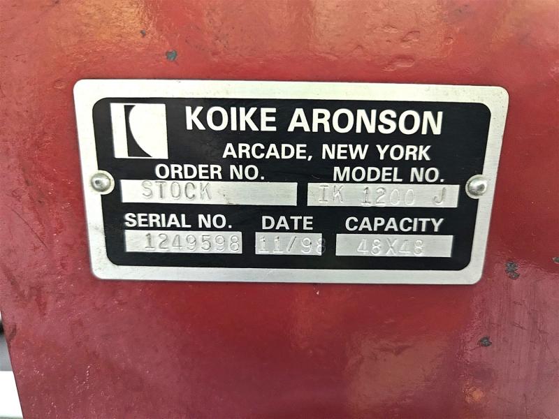 1998 KOIKE ARONSON PLASMA CUTTING TABLE MODEL IK-1200J, 24 FT. X 54 IN. ROLLER TRACK TABLE W/ 12 FT. X 63 IN. STEEL BURN CUTTING TABLE S/N 1249598 (PLASMA UNIT SOLD SEPARATE - LOT 167)
