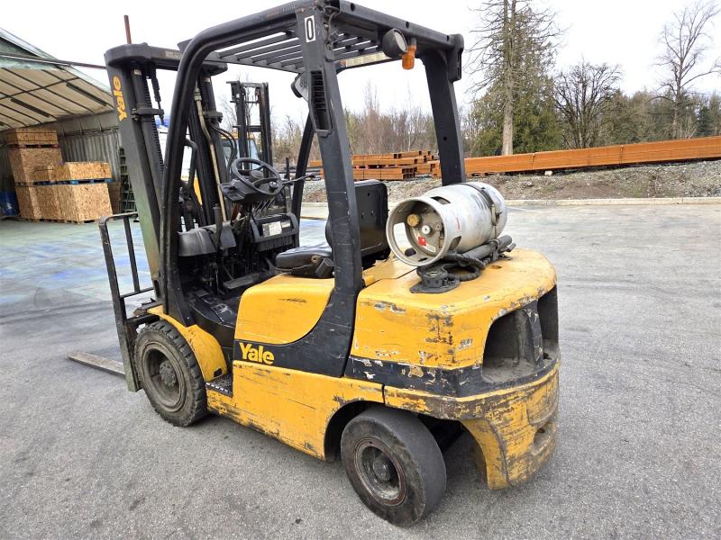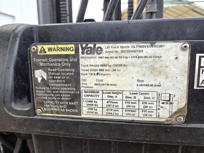 2010 YALE MODEL GLP060VXNVRE091, 5700# CAP., PROPANE, 187" LIFT, SS, SOLID RUBBER, METER READS 15,127 HRS., S/N B875V04210H (OFFSITE IN ABBOTSFORD, BC)