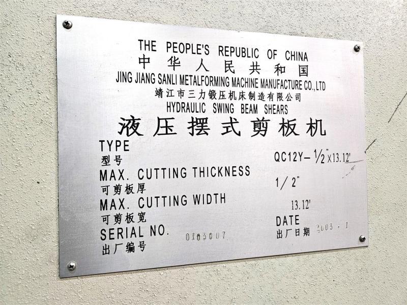 1/2" X 13' HYD. SHEAR