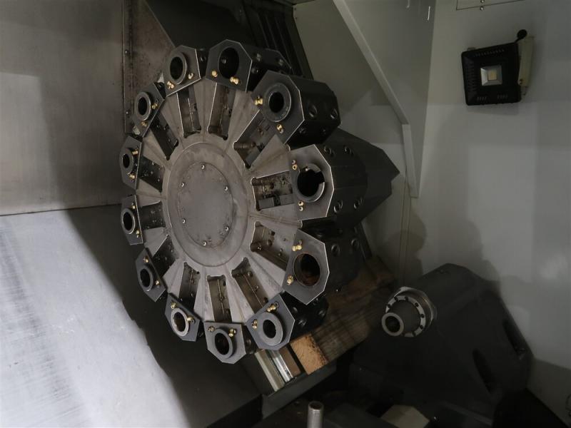 2018 HAAS ST-45L CNC 7.1” Bore, HAAS CNC Control, 12-Station bolt on Turret, 80” Bed, 34.5” Swing, 80” Max Turning Length, SMW Autoblok Big Bore 18” Air Chuck, 40HP, 1,400 RPM, extended tool pocket, belt type chip conveyor, Programmable servo tailstock, remote jog handle, Rigid Tapping, steady rest provision, s/n 3110182