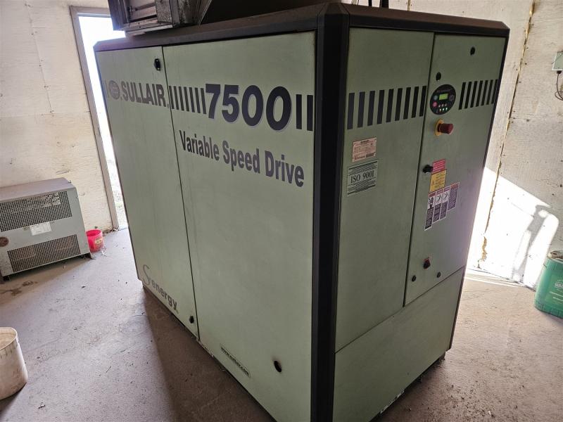 SULLAIR 7500 SCREW COMPRESSOR w/ SULLAIR RD500 MODEL RD500460360A AIR DRYER SN 2012SA01265, W/RECEIVING TANK