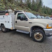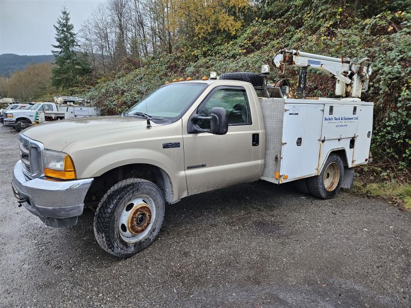 2001 FORD F450, DIESEL, 195,976 KM, AUTO CRANE, SERVICE TRUCK BODY, COMPRESSOR, DUAL REAR TIRES