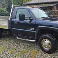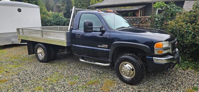 2006 GMC 3500 SLE FLATDECK, DURAMAX DIESEL, 6 SPD MANUAL, 4x4, A/C, P/W, POLISHED ALUM. DECK