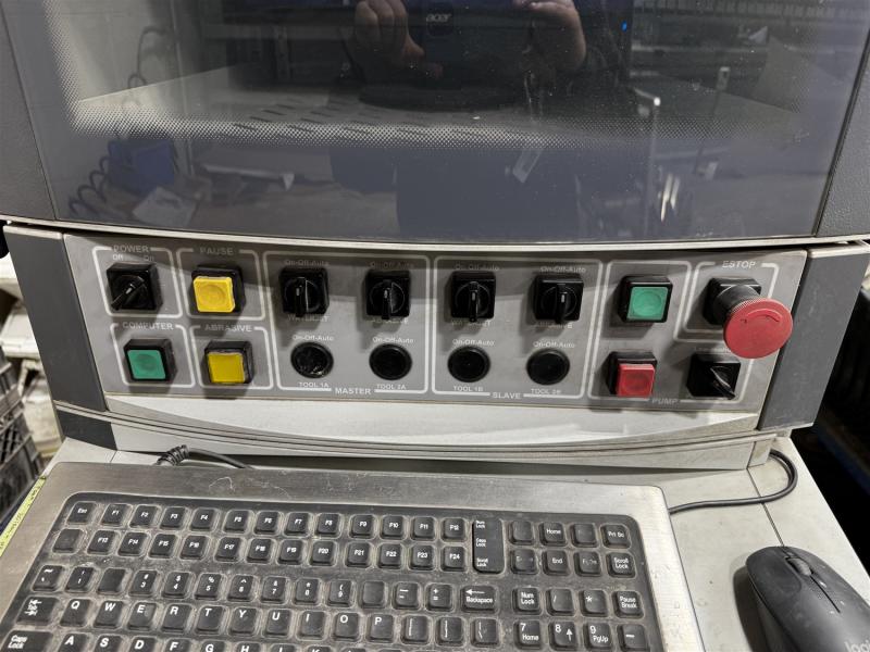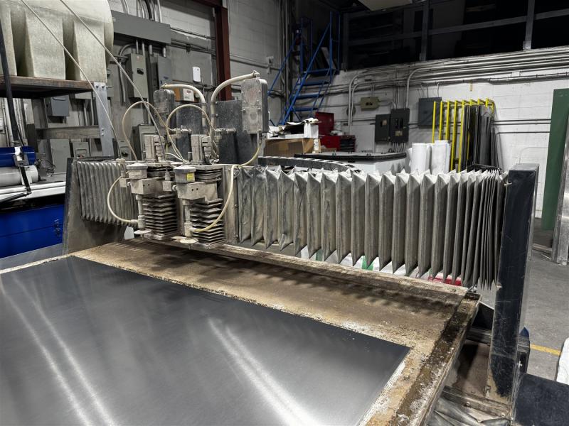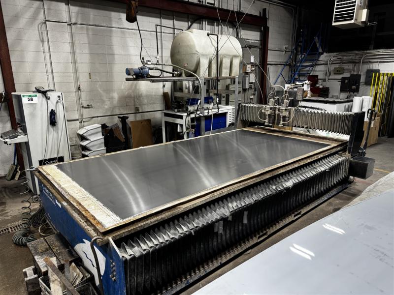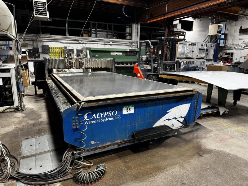 2003 CALYPSO WATER JET CUTTING TABLE, 6' X 12',60,000 PSI, IRAND SL IV PLUS 60 PUMP, 60 KSPI, 230V/3PH, FULL LOAD AMPS 142, ESTIMATED HOURS 15,000, BOTH HEADS WORKING (BEING REPLACED BY NEW MACHINE)MACHINE OPERATING VIDEO WAS TAKEN ON JAN. 13, 2025 BY JOINER SALES AND WILL BE IN OPERATION UNTIL THE NEW MACHINE IS INSTALLED PRIOR TO THE AUCTION. MACHINE IS OFF SITE A SHORT DISTANCE FROM THE SALE SITE.