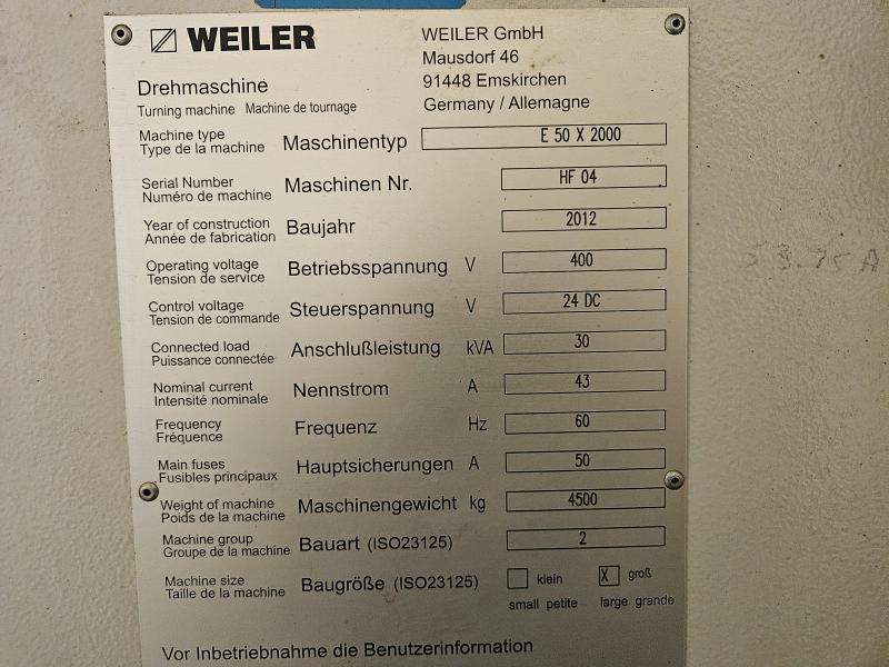 2012 Weiler E50 x 2000 s/n HF 04, 400v/3,