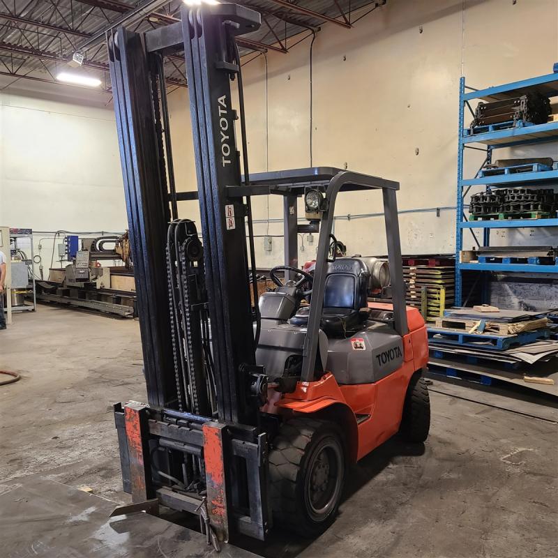 Toyota 7FGU32 forklift, 6500lb. capacity, 237" lift, side shift, solid tire, meter reads 1785 hrs., s/n 60465